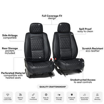 We didn't just design a seat cover; we engineered a complete interior upgrade. Crafted from premium, scratch-resistant eco-leather, this full-coverage design effortlessly handles spills, pets, and daily wear. Inside, high-density memory foam delivers first-class comfort, while the perforated center ensures your heated and cooled seats perform flawlessly. With strict side-airbag compatibility and unobstructed access to all your seat controls, you get uncompromising safety without sacrificing style.